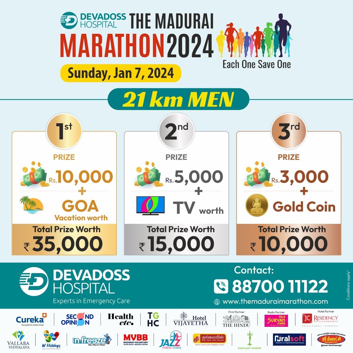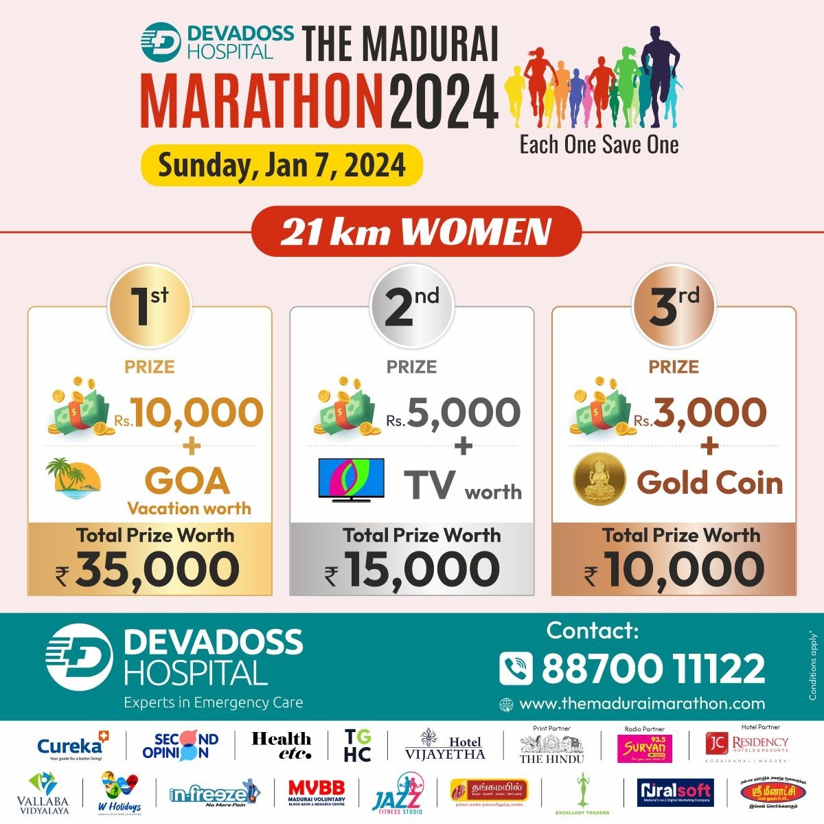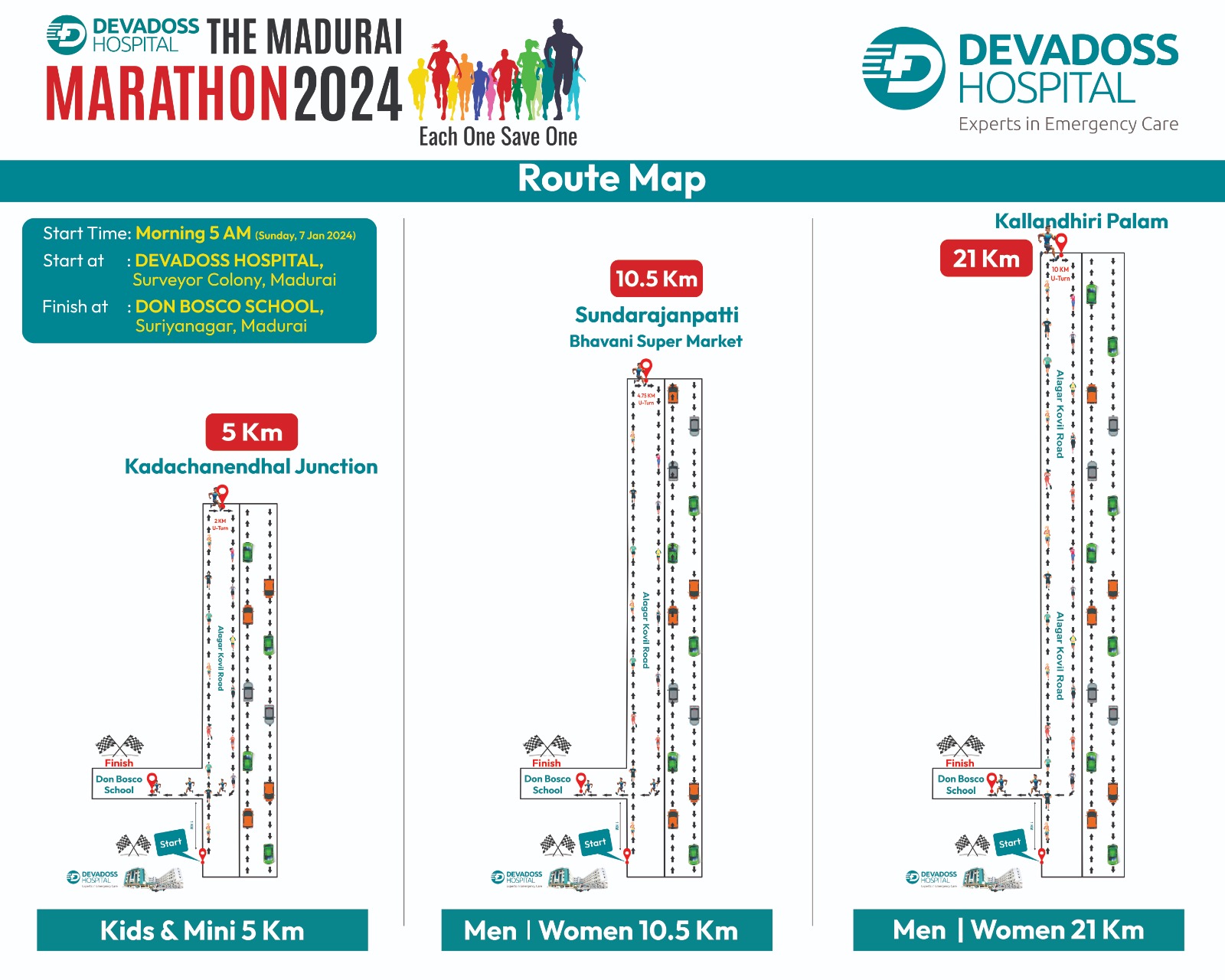The Madurai Marathon was started at the year of 2017 and continued to its fourth year now. For every year The Madurai Marathon had a different theme. First year theme was “Let’s run to make a Healthy Nation”. We had 1500+ participants including 500+ womens and 300+ kids. Second year Devadoss Hospital collaborated with Madurai Corporation and successfully conducted The Madurai Marathon 2018 with the Theme of “Swachh Survekshan”. We had 2500+ participants including 800+ women and 600+ kids. Third year we had 2800+ participants including 900+ women and 600+ kids. Fourt